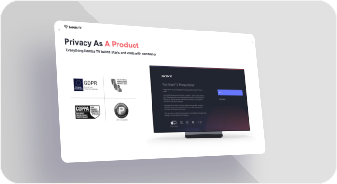 + + Privacy As A Product Everything Samba TV builds starts and ends with consumer