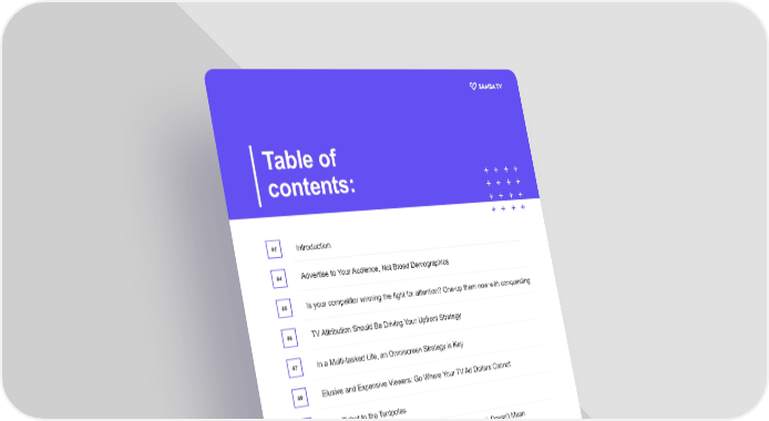 Table of + + + + + + + + + + + + contents: + + + + 03 Introduction 04 Advertise to Your Audience, Not Broad Demographics 05 Is your competitor winning the fight for attention? One-up them now with conquesting 06 TV Attribution Should Be Driving Your Upfront Strategy 07 In a Multi-tasked Life, an Omniscreen Strategy is Key 08 Elusive and Expensive Viewers: Go Where Your TV Ad Dollars Cannot 09 Your Ticket to the Tentpoles 10 Just Because Viewers Are Defining their Own ‘Primetime’, Doesn’t Mean You Aren’t in Control 11 Stop Throwing Spaghetti at the Wall and Cleaning Up Wasted Budget 12 De-duplicated Measurement Is Critical 13 Light and Medium TV Viewers Provide Opportunity For Incremental Reach 14 Conclusion